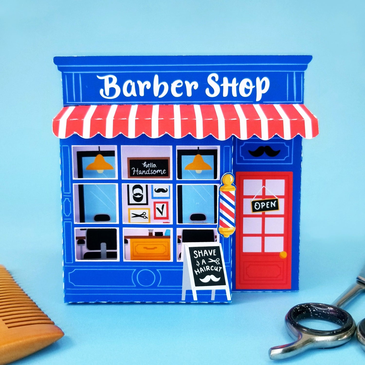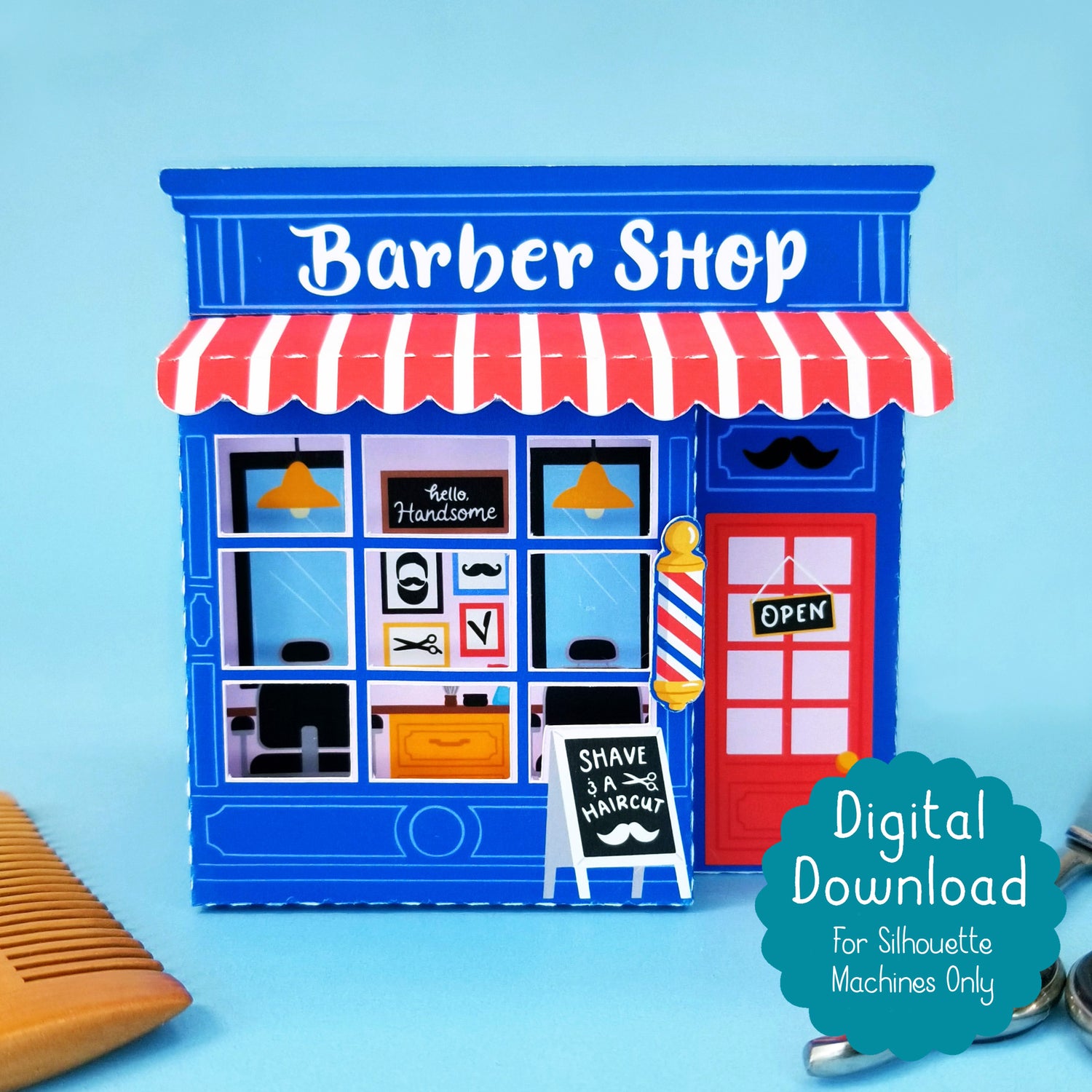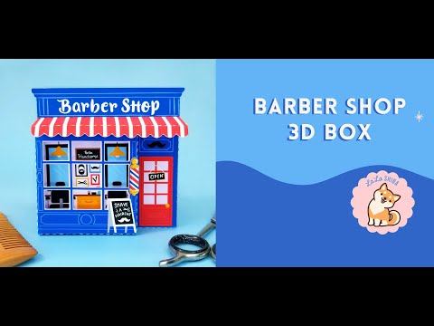 Barber Shop Print and Cut 3D Gift Box SVG Cutfile for Silhouette Machines