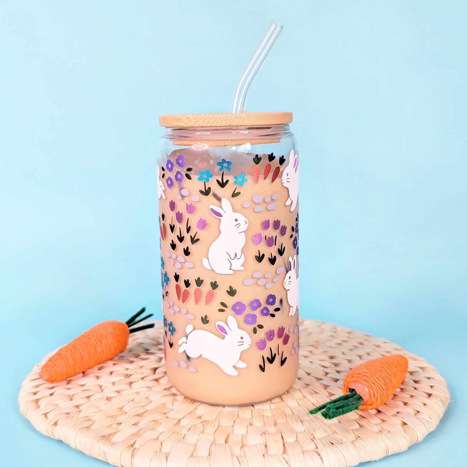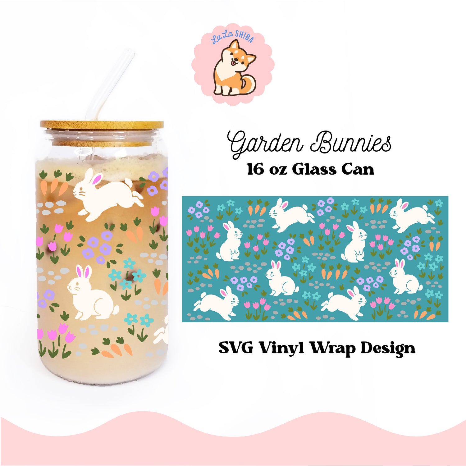 Bunny Garden 16 oz Libbey Glass Can Vinyl Wrap SVG