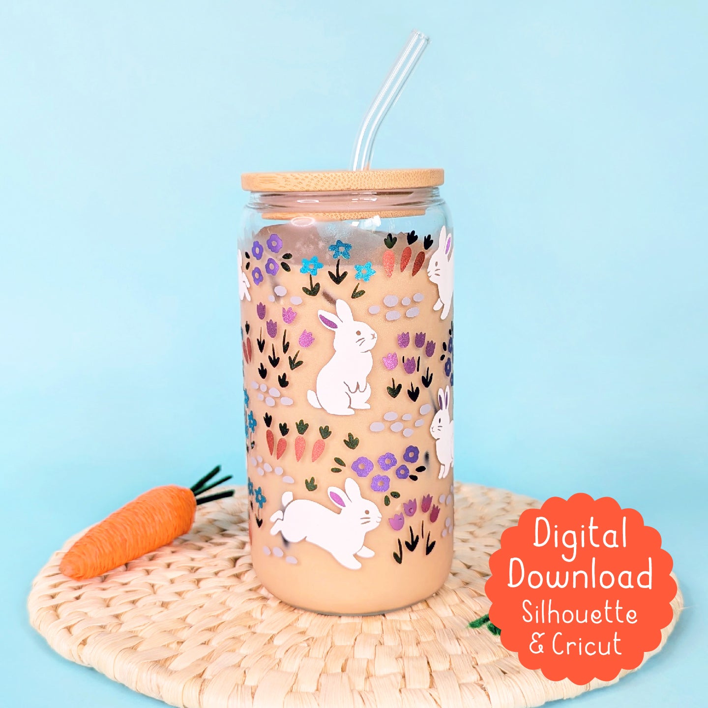 Bring your crafting projects to life with the Bunny Garden Vinyl Glass Tumbler SVG Wrap! This digital download allows you to create stunning, tumblers featuring an enchanting bunny garden design. Perfect for crafters and DIY enthusiasts, this SVG file is compatible with cutting machines like Cricut and Silhouette, making it easier than ever to add a whimsical touch to your glass tumblers.