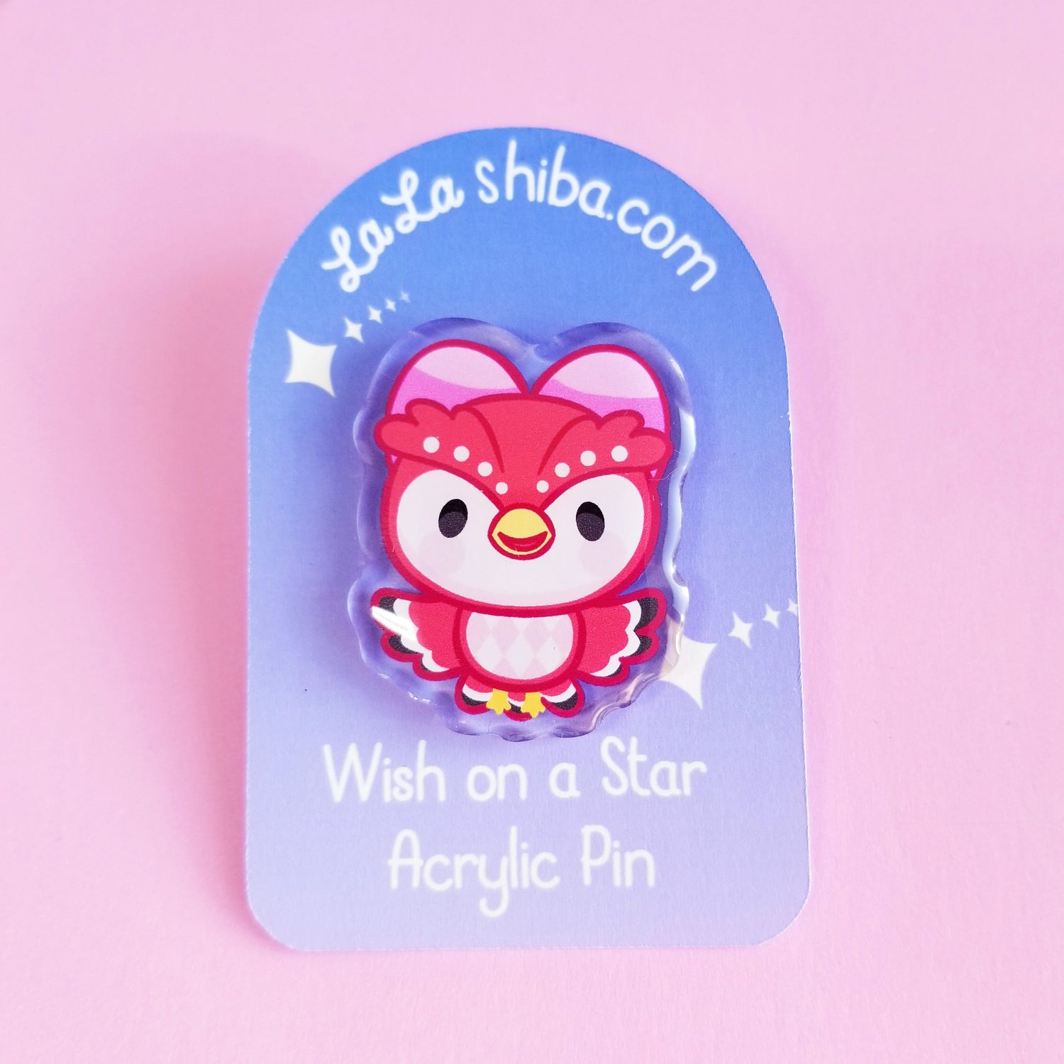Introducing our limited series ACNH Celeste pin! This acrylic pin is 1.5" and makes an adorable gift for ACNH lovers! All pins come with a clear epoxy finish and a pink heart stopper on the back.