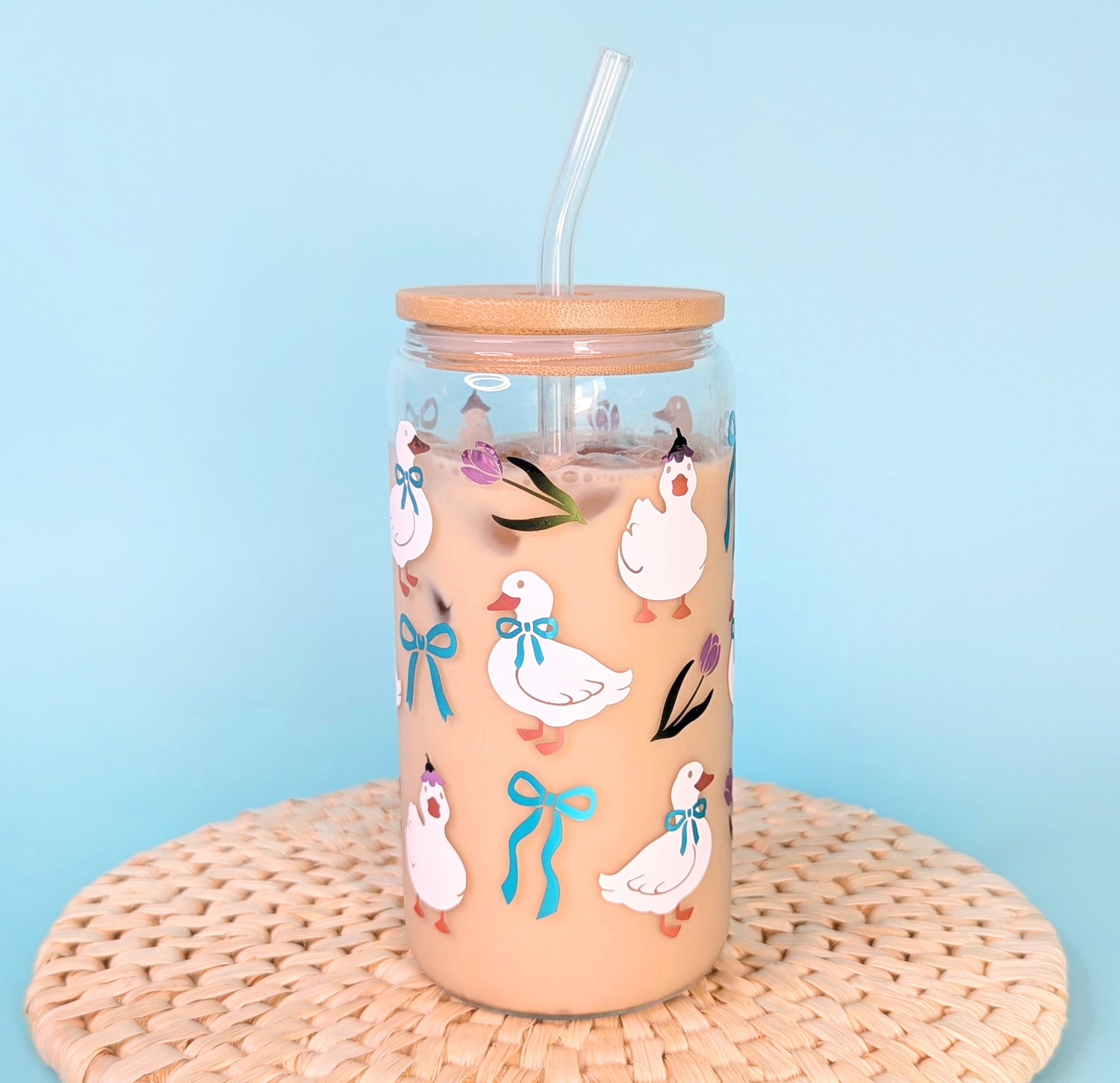 Ducks and Flowers 16oz Libbey Glass Can Vinyl Wrap SVG Cutfile