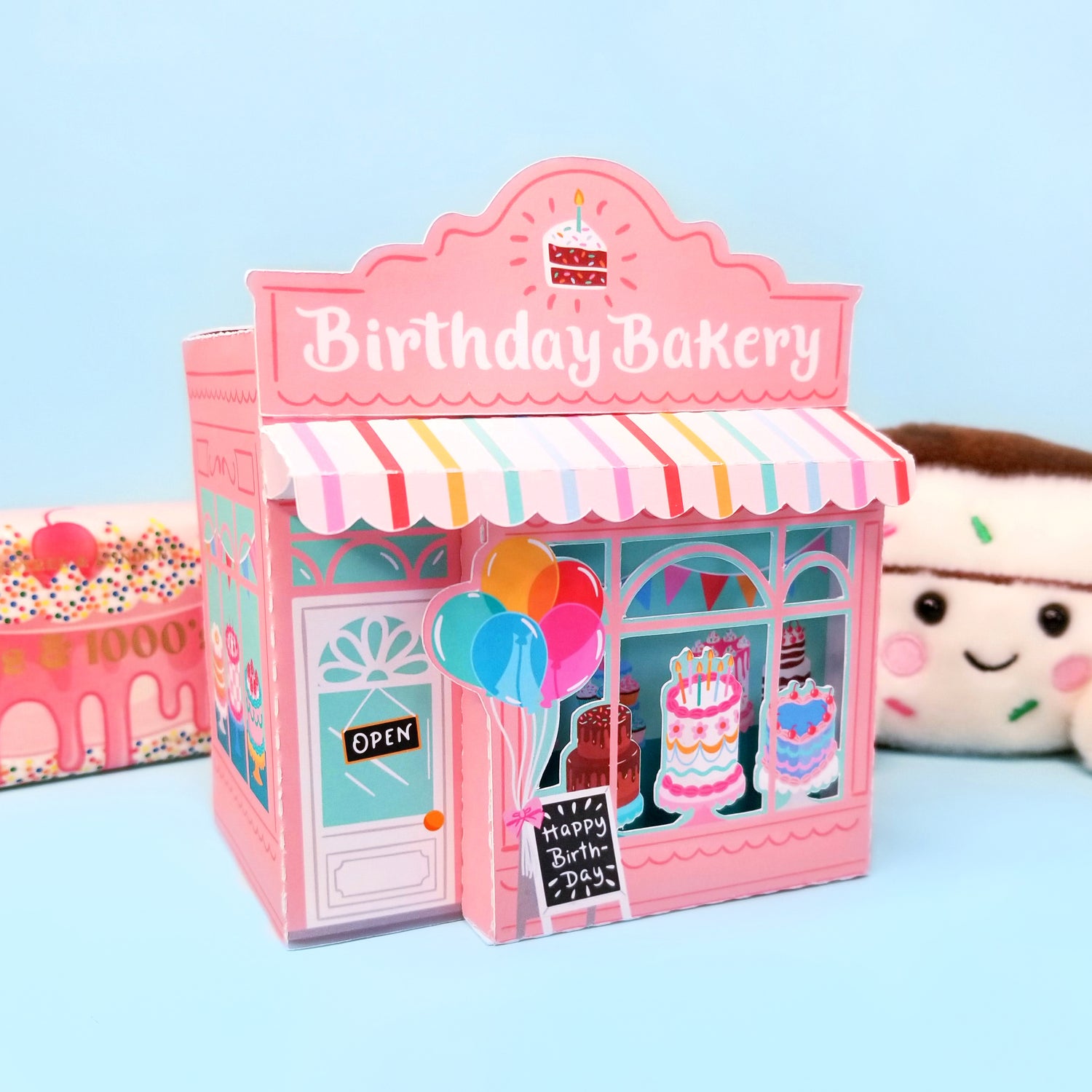 Whip up a sprinkle of sweetness with this adorable Birthday Bakery Gift Box SVG! Perfectly designed for print & cut Cricut and Silhouette machines, this charming little box is shaped like a mini bakery shop—complete with frosted cakes, pastel bunting, and a striped awning that screams “celebration!”