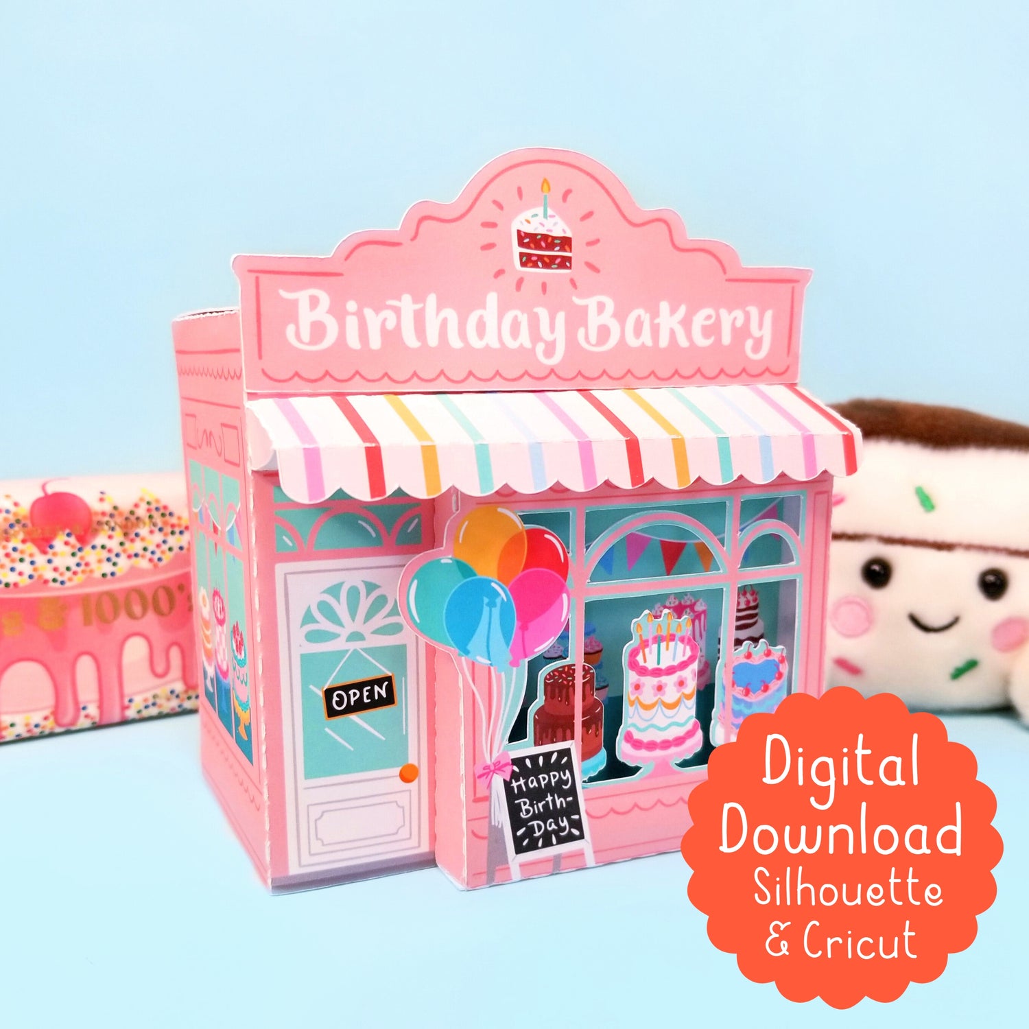 Print and Cut 3D Birthday Bakery Gift Box SVG for Silhouette and Cricut