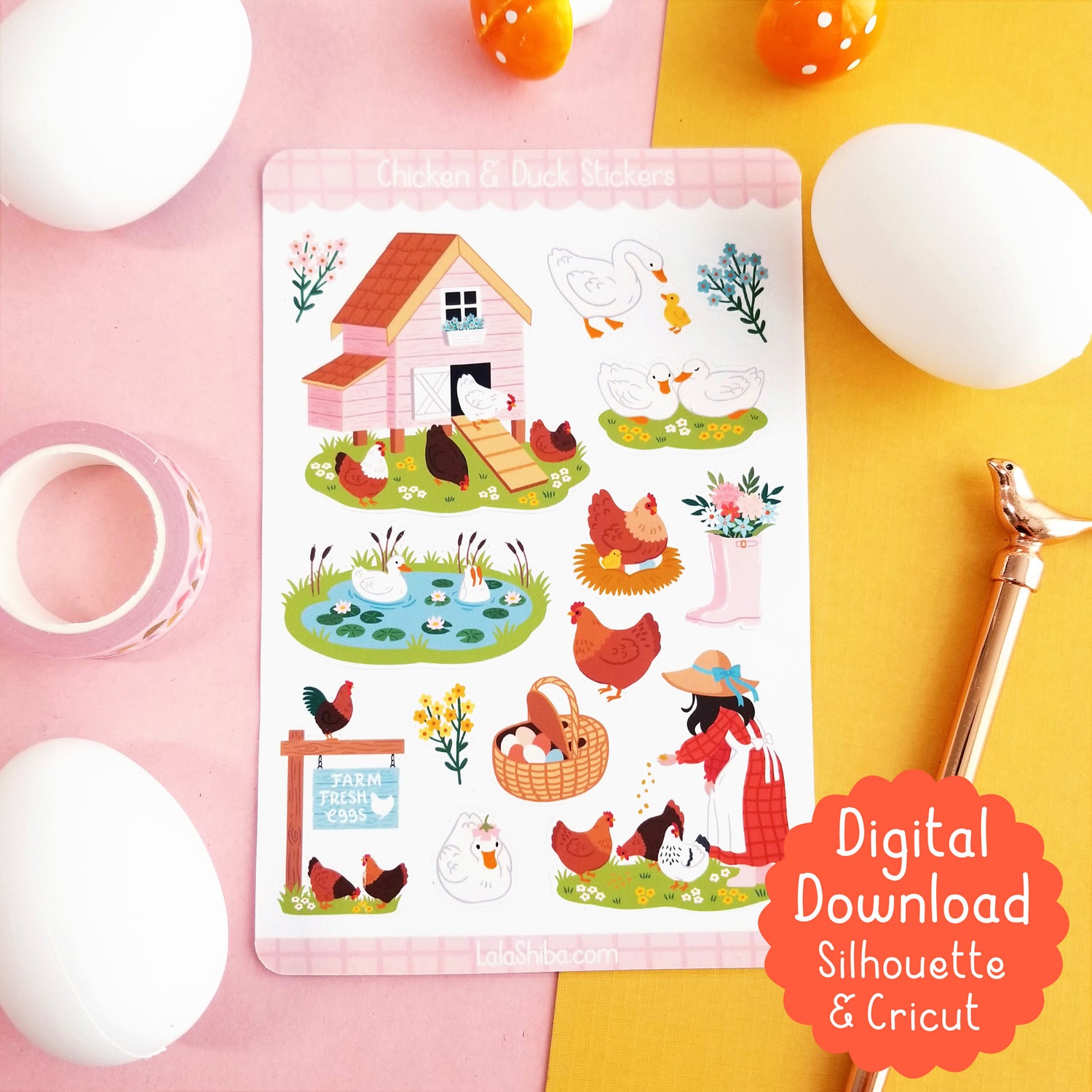 Print and Cut Chicken and Duck Cottage Planner Stickers