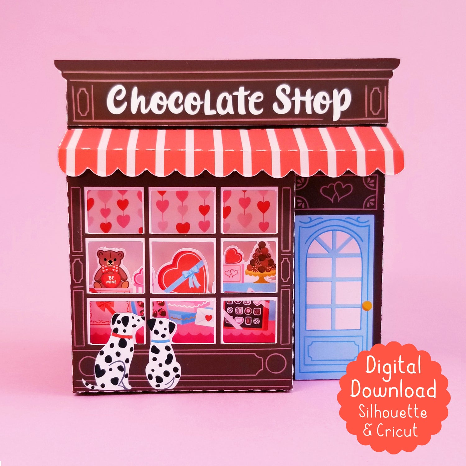 Print and Cut Chocolate Shop 3D Gift Box for Silhouette and Cricut Cutting Machines