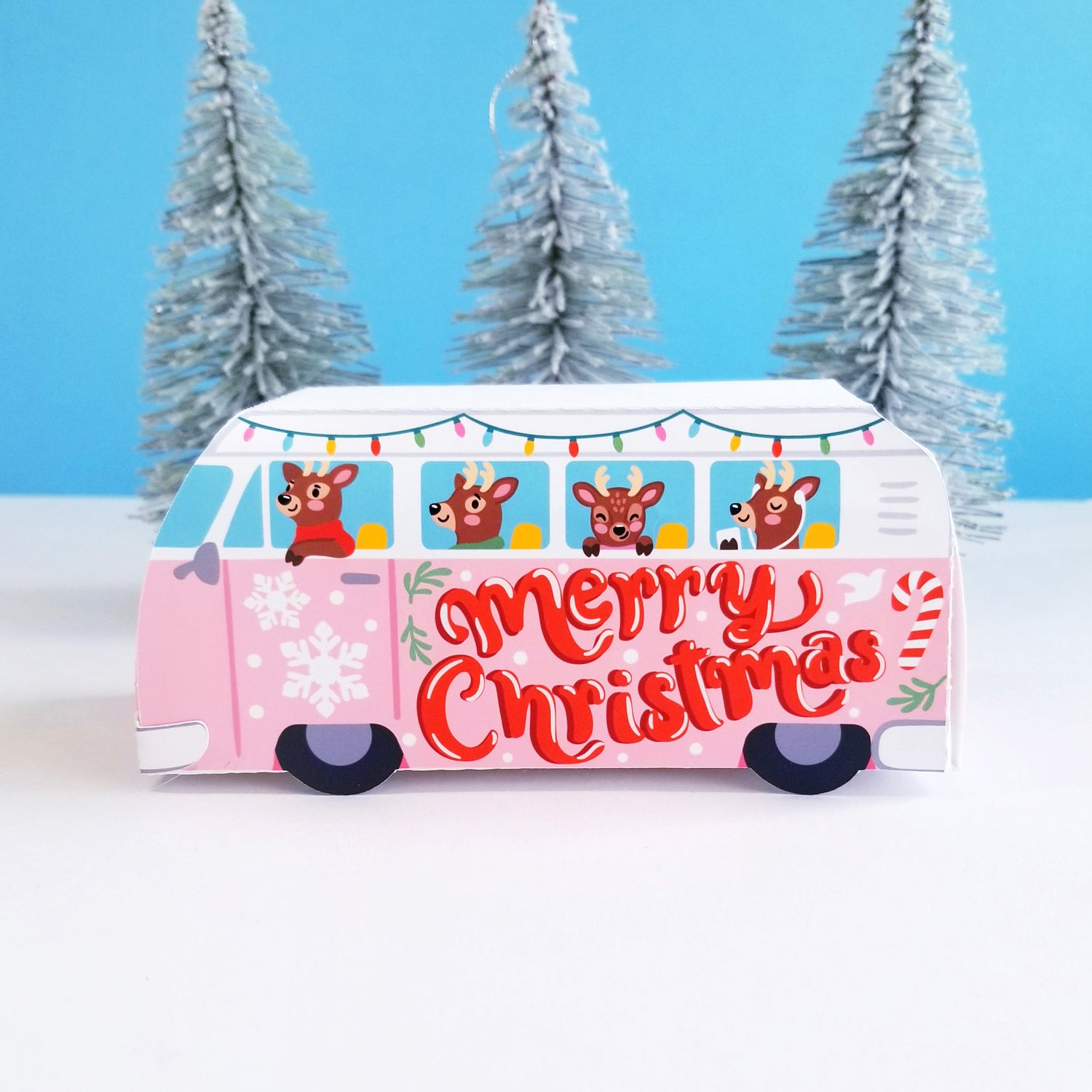 Print and Cut Christmas Reindeer Bus 3D Gift Box for Silhouette