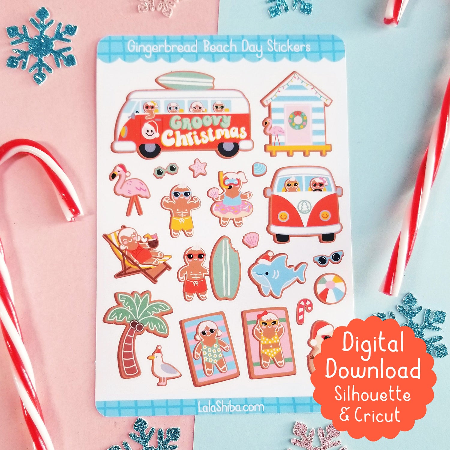 Print and cut your own cute gingerbread beach stickers! They are great for decorating cards, planners, scrapbooks and more. With this sticker set you can create die-cut stickers or planner sticker sheets! These files are designed to work with Silhouette and Cricut cutting machines. If you're using Silhouette you will need the Silhouette Studio Designer Edition software to import SVG files.