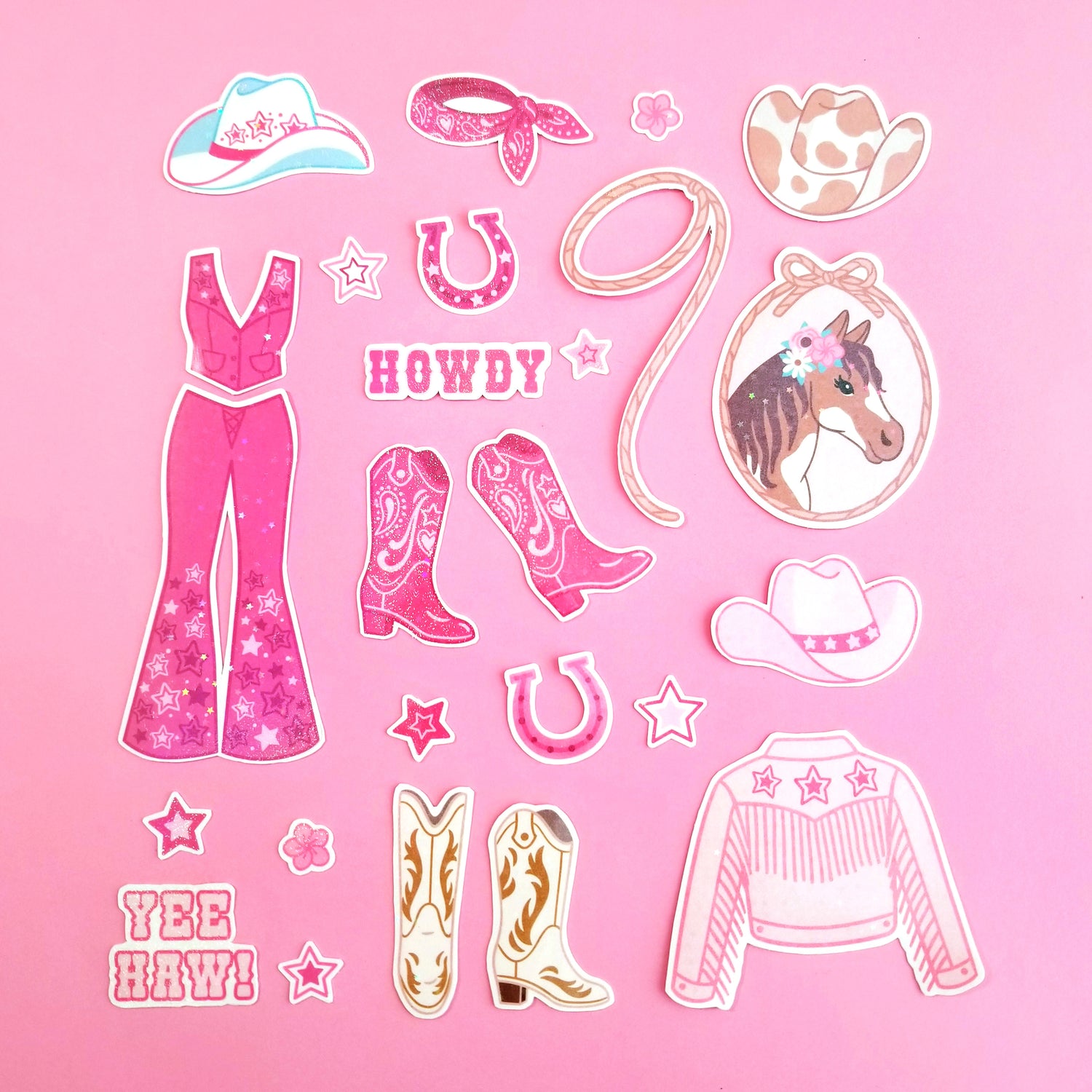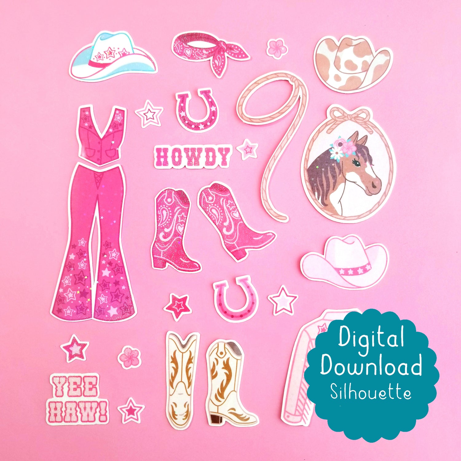 These pretty cowgirl Barbie inspired print then cut stickers are great for creating cards, decorating planners, scrapbooks and more. The SVG file is designed to work with Silhouette cutting machines. These stickers are for commerical use, meaning they can be used on a variety of commerical products, however the selling the digital sticker set is strictly prohibited.