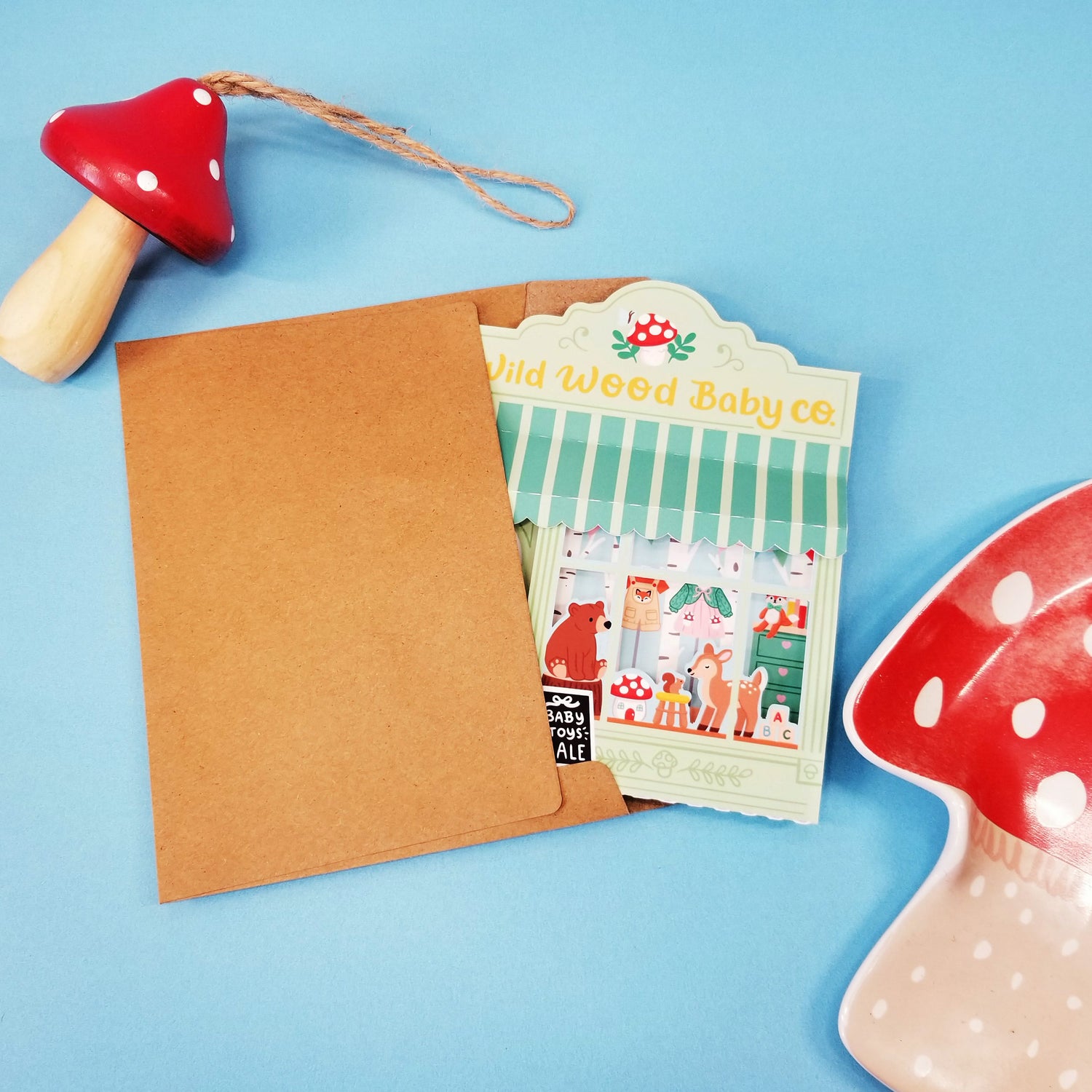 Create a charming handmade moment with our adorable Wild Wood Baby Shop 3D Card! Part of our brand-new 3D Shop Card Collection, this whimsical design folds flat to fit an A2 envelope and pops up into a delightful storefront scene—perfect for baby showers, toddler birthdays, or just a sweet hello from the woodland world.